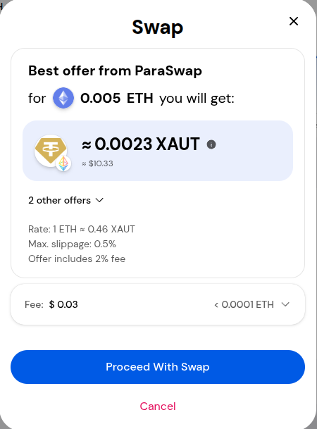 Review the swap then click 'Proceed With Swap' when you are ready.