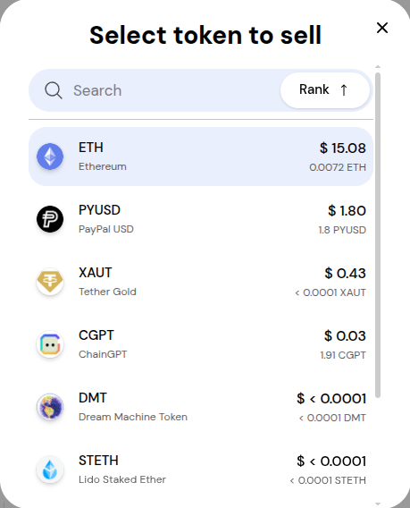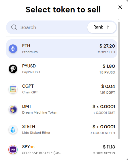 In the token selection menu, you can select the token you want to swap.