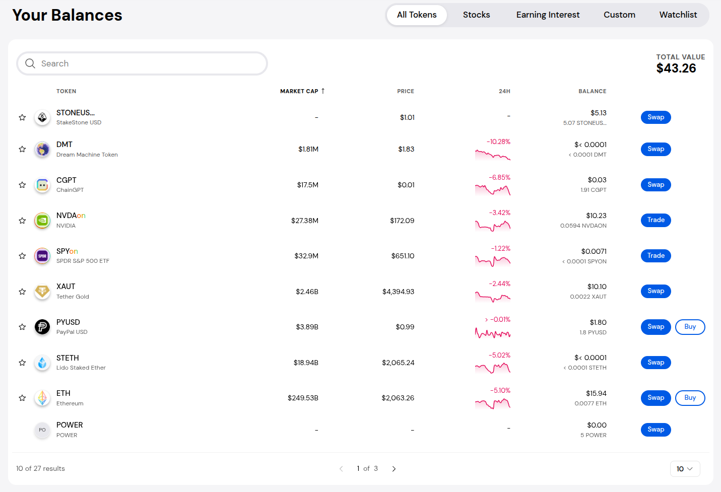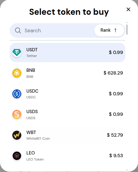 You can scroll down to explore more tokens that you can swap or buy. You can use the tabs at the top right to filter the tokens or use the search bar to find a specific token.