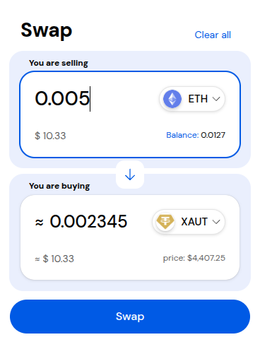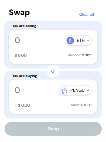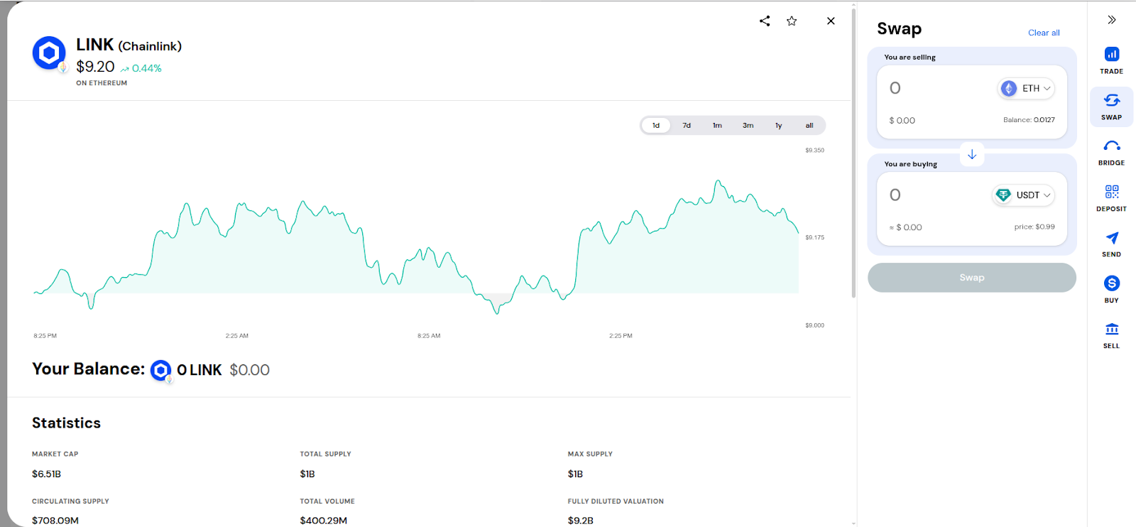 Once you click on a token, you will see more details about the token and the Swap form on the right side. (Note that you can also swap crypto from one network to another, which is called bridging and will pull up the Bridge form for you automatically.)