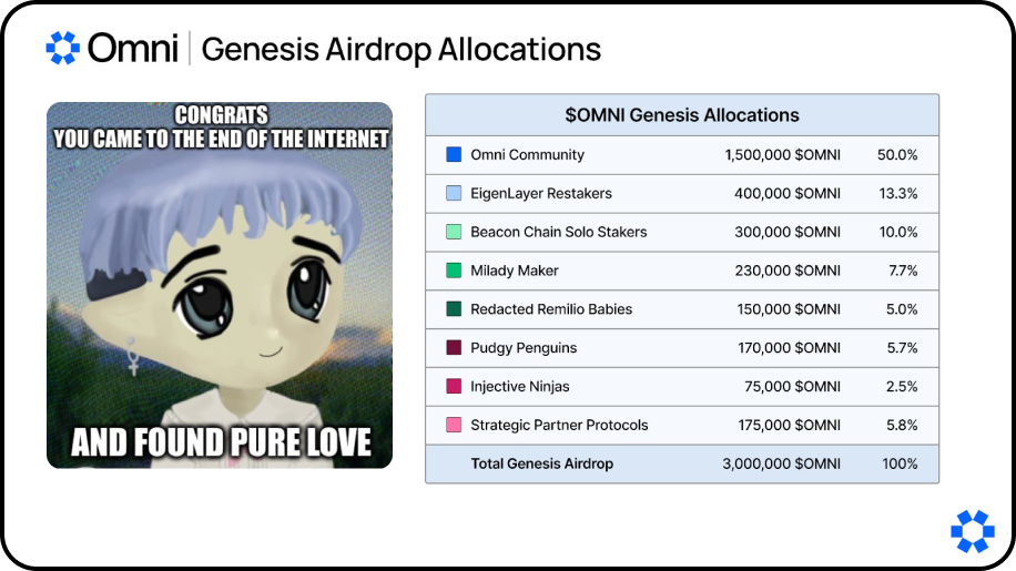 You may have realized by now that if you wanted to, you could technically spin up 1000 wallets and be active on protocols all day. In theory that would qualify you 1000 times for a single airdrop. In order to combat this behavior, protocols like Ethena have and Omni have begun airdropping to NFT communities. Got a Pudgy Penguins in your wallet? You qualify. Got a Milady? You qualify. Hold the correct NFT and win.