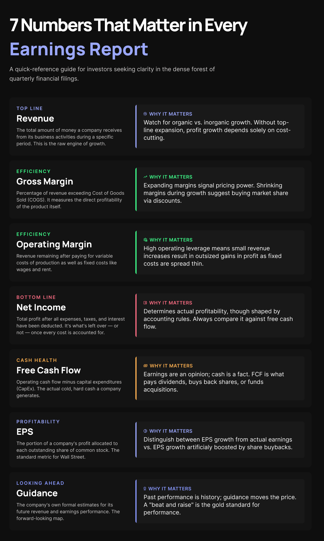This is often the most market-moving part of an earnings report. Guidance is management's forward-looking forecast for the next quarter or full year — their expectation for future revenue, margins, and earnings.