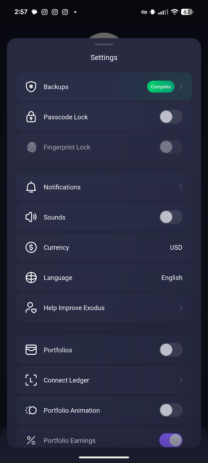 Open up your Exodus Wallet. Unlock your wallet then swipe down the wallet details.