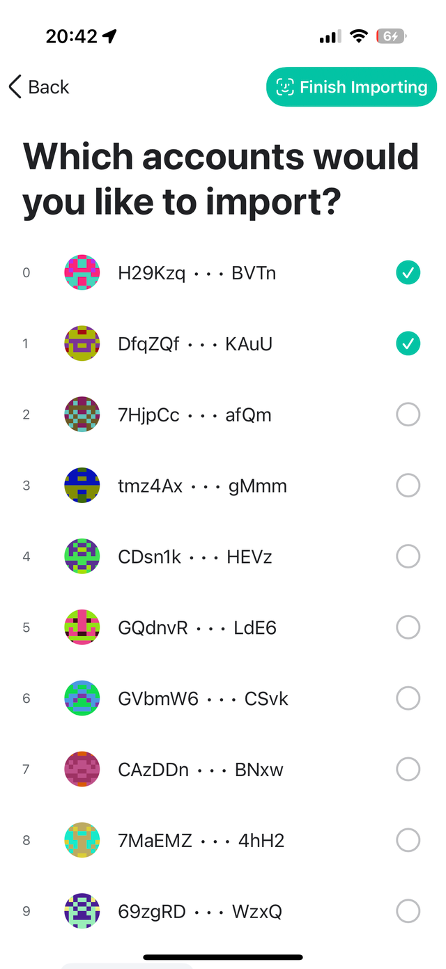 Note: Only SOL from this wallet will be available in MEW at this time. MEW Mobile is only importing the key to the SOL account(s) you will select, protected under multiple layers of cryptographic and biometric security. MEW is NOT importing or saving your entire Exodus wallet phrase. Your Exodus wallet phrase and your existing MEW Mobile phrases are separate, and you should continue to keep them both secure.