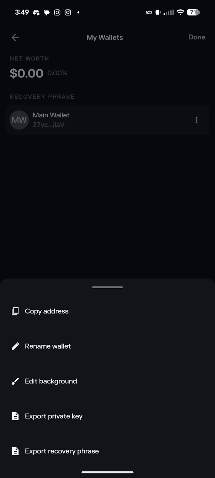 Select ‘Export recovery phrase’.