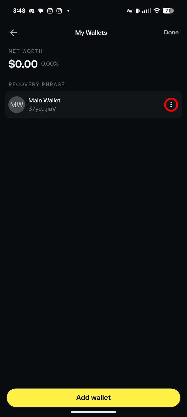 Click the 3 dots on the right of the wallet you want to import.