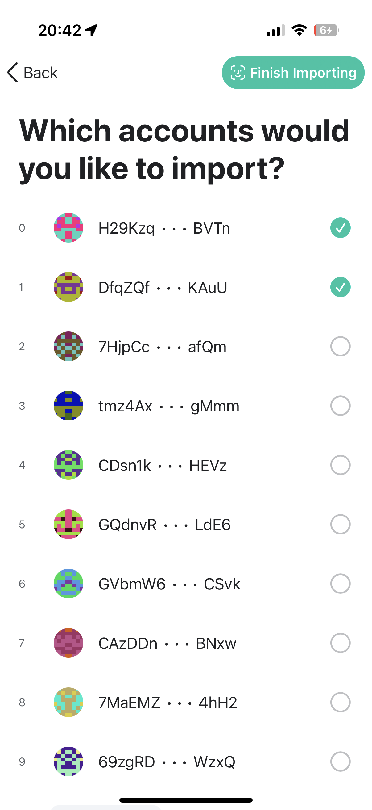 Select the accounts you want to import then click ‘Finish Importing’.