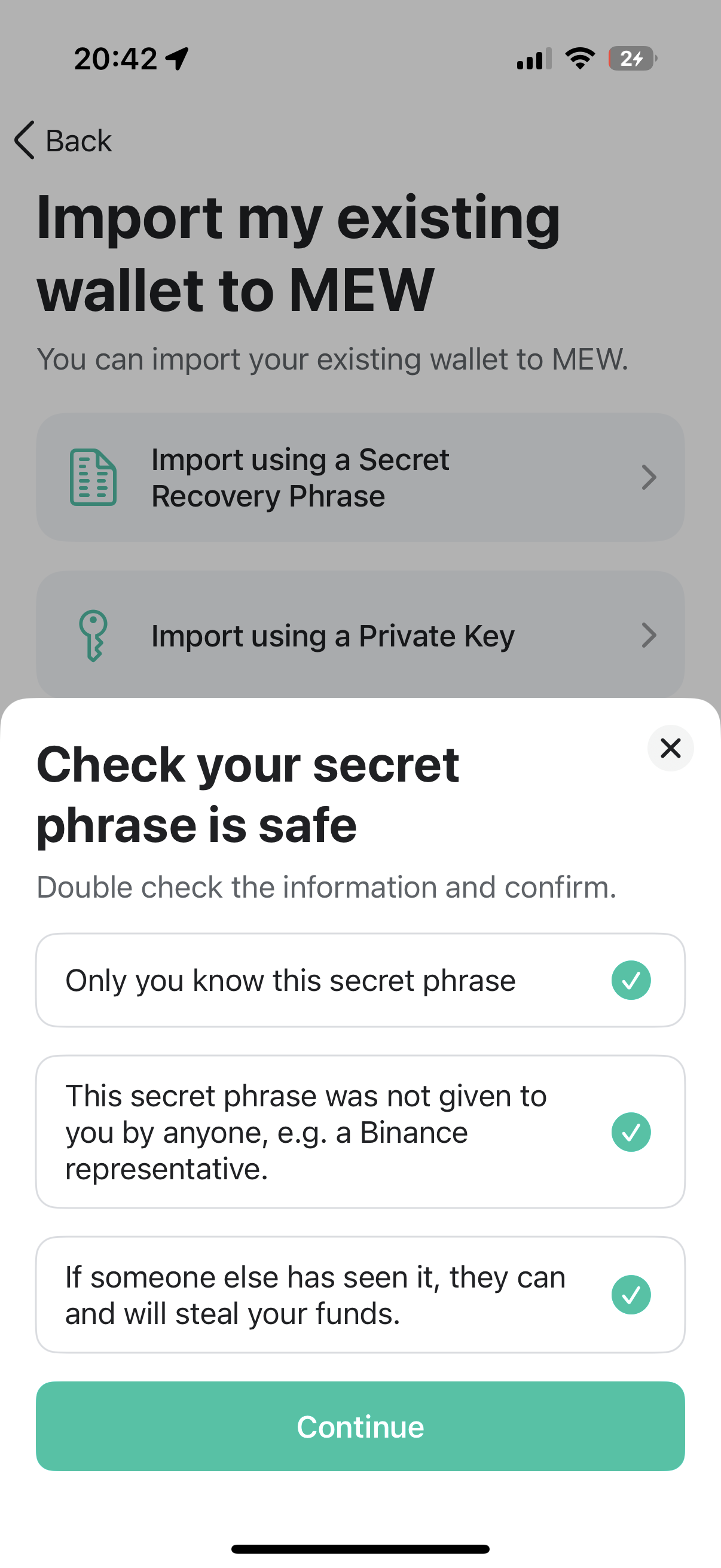 Once your Solana wallet is done importing, click ‘Continue’.