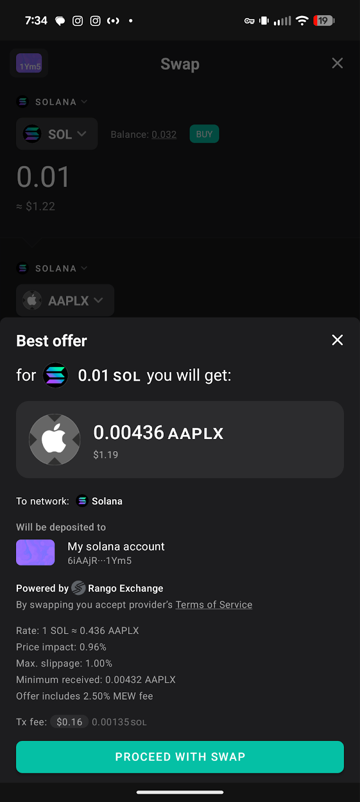 You should see your tokens in your MEW Mobile wallet and you should be able to send your tokenized stock to any Solana wallet now!