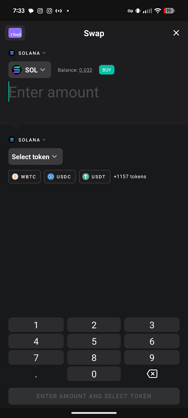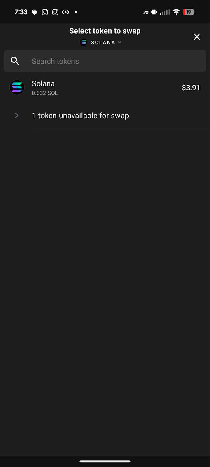 Select the token you want to swap from. We will leave it on the Solana token for this example.